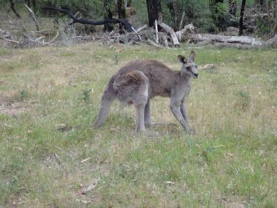 Nach der Great Ocean Road ging die Tour am zweiten Tag zu den Grampians. Eine schoene Gegend mit tollen Wasserfaellen wo aber auch schlaffende Koalas in den Baeumen entdeckt werden konnten. (die schlafen 20 Stunden am Tag - die restlichen 4 fressen sie und paaren sich....was fuer ein Leben! =D) Zudem muss damit gerechnet werden das Kangoroos einem vor das Auto huepfen. Das ist zwar zum Glueck nicht vorgekommen, trotzdem gab es Kangoroo zum Abendessen. So kam es das ich an diesem Tag zum ersten mal Kangoroos gesehen, gegrillt und gegessen habe.