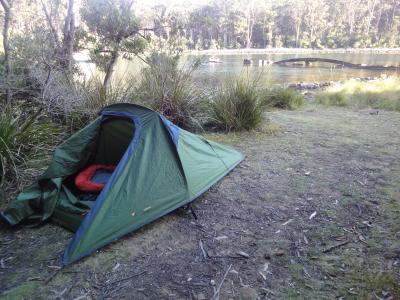 Daher hab ich mir auch gleich Zelt, Schlafsack und eine Matratze gekauft und hab mich in die Buesche geschlagen.